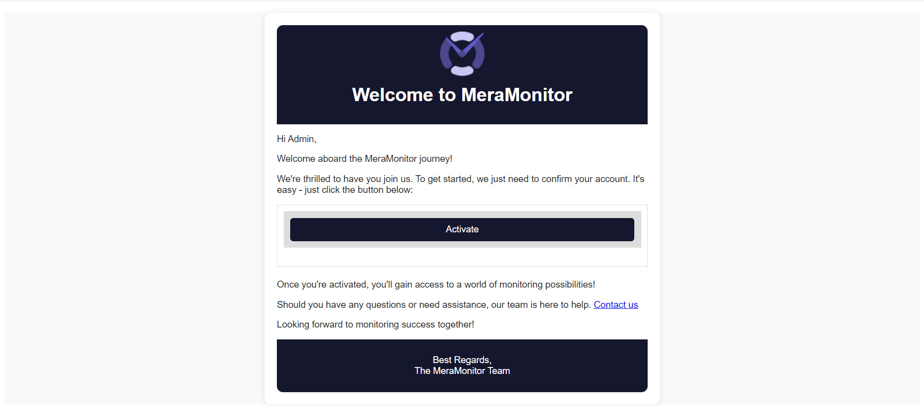 Once you submit our form, you'll receive an activation email. After setting up your credentials, you gain access to Mera Monitor’s web application.