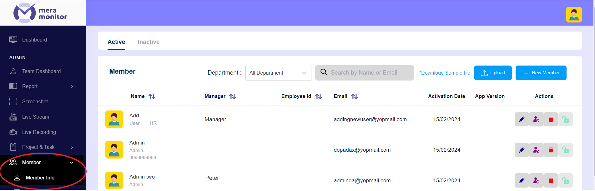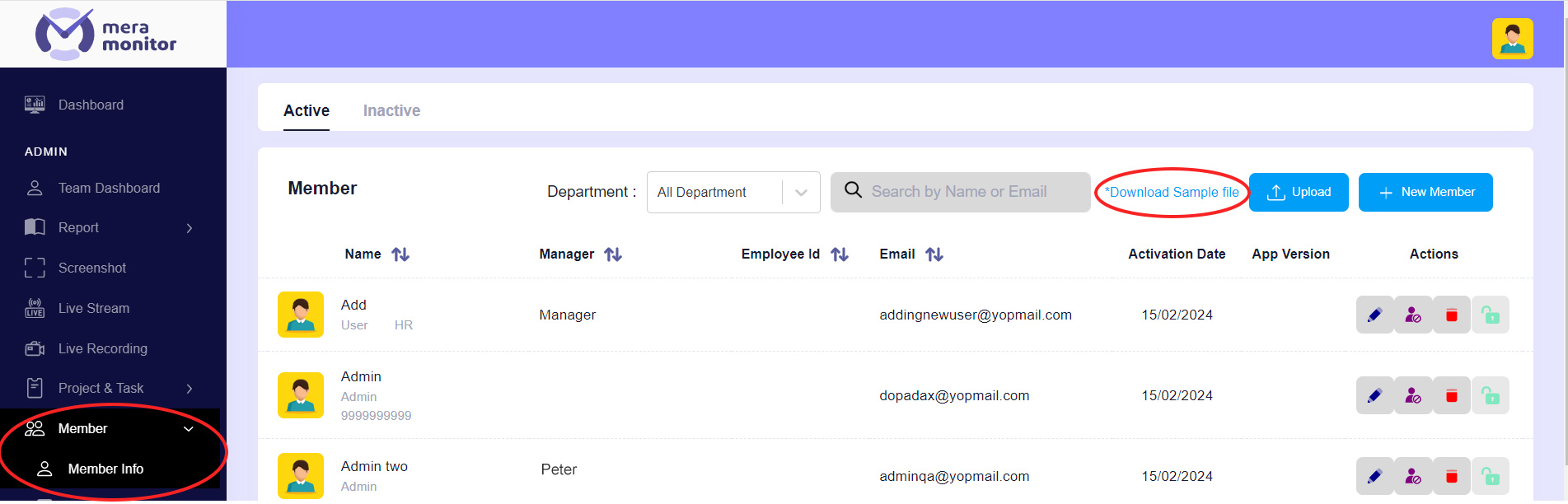 If you want to add multiple users at a time, navigate to the "Member Info" link under the member section of the admin dashboard and click on "Download Sample File”